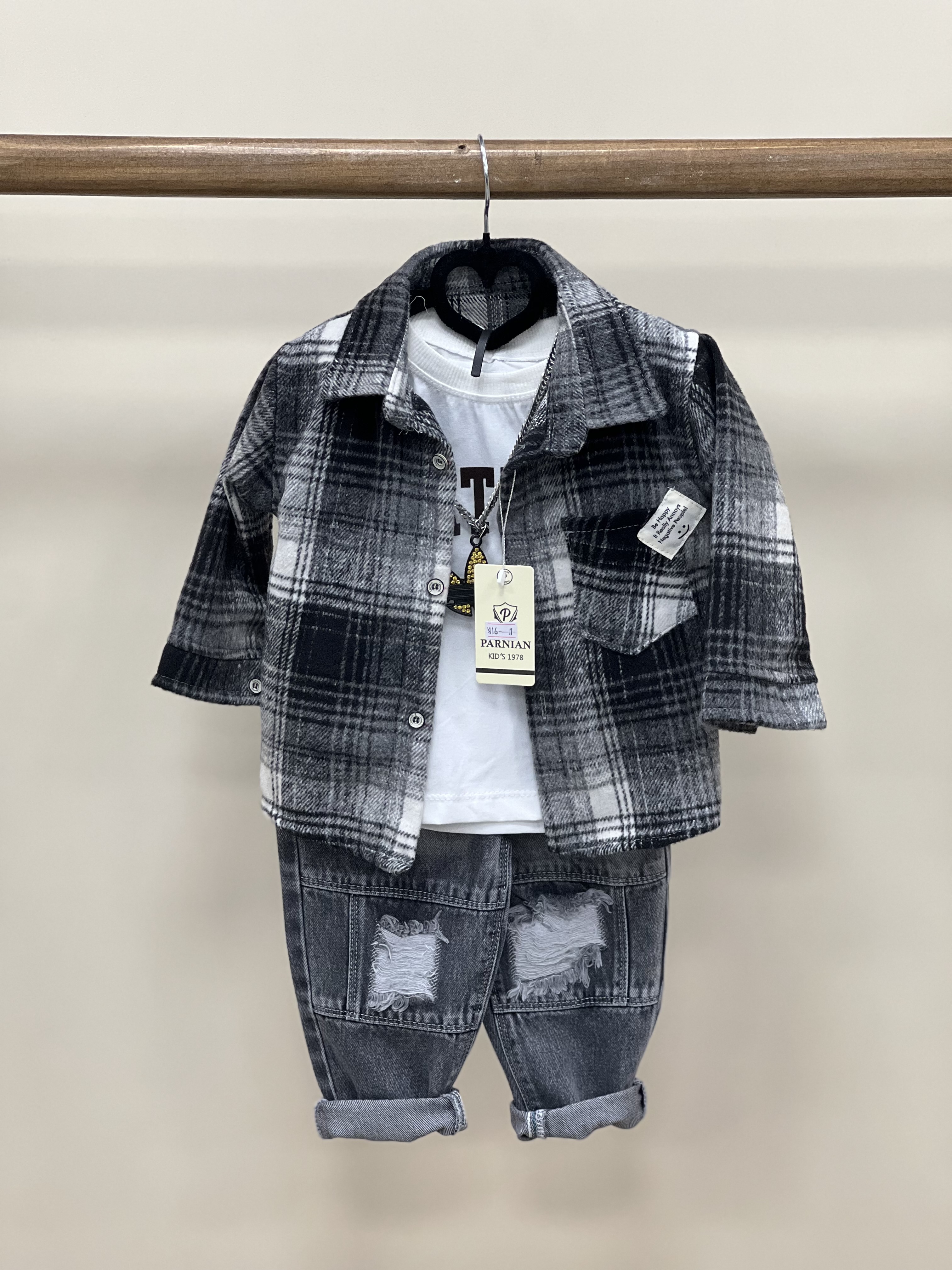 ✨سایز ۳:قد تیشرت۳۸/پهنا تیشرت۳۲/قد شلوار۵۱/پهنا شلوار۳۳/قد شکت۳۹/پهنا شکت ۳۱/قد آستین شکت ۳۰سانت
